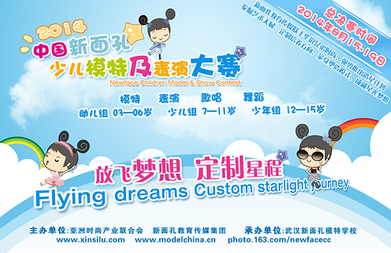 8月15日—19日,2014中國新面孔少兒模特及表演大賽總決賽將在在江城武漢舉行,同時中國少兒革命圣地紅安行活動也將同時舉行。
