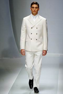 無獨有偶的,繼前季某品牌擷取Banker氣質的系列男裝一新耳目之后,Valentino在07秋冬,也以紐約倫敦的證交所股票經(jīng)紀人為靈感,高級布料與端莊嚴謹?shù)募儼?石灰色/炭褐/咖啡駝等色調、細膩無暇的裁縫功力、構筑出都會精英的完美典范;同時,運用開什米爾和天鵝絨的視覺三維效果,讓奶油色/骨瓷色與象牙色這些無情緒的彩度,充滿豐富層次感;而殿后演出的黑色皮大衣以及皮褲的同色系搭配,更強調著柔軟頂級皮革的奢華質感。
