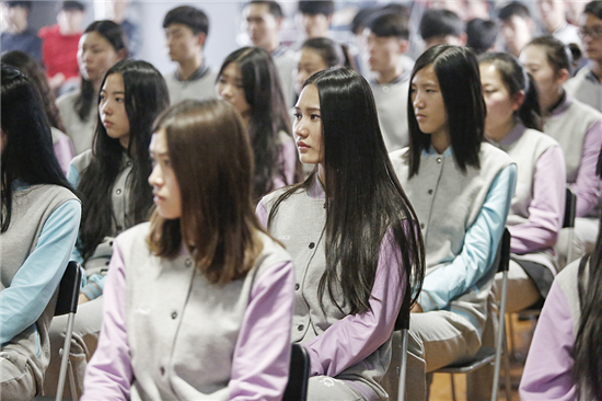 天津科技大學(xué)資深教師、服裝表演專(zhuān)業(yè)專(zhuān)業(yè)課考官石明明老師為新面孔藝術(shù)高考培訓(xùn)班學(xué)員講解服裝表演與展示的審美追求