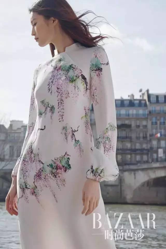 安靜的站在塞納河旁,水面折射的粼粼波光映在何穗身上,就像給她鍍上一層光圈,微風(fēng)吹動(dòng)她的頭發(fā)和輕薄的絲綢長(zhǎng)裙,恍惚間讓人有置身蘇州園林之感。何仙姑的每一個(gè)拍攝回首都美如畫,精致的花卉印花圖案栩栩如生在她身上綻放盛開,優(yōu)雅得令人不禁屏息。花絮中,一個(gè)側(cè)顏都有擋不住的超模氣場(chǎng)。
