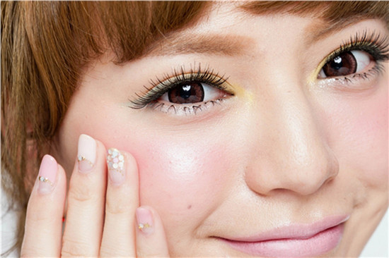 STEP 6-首先先使用霜狀腮紅,拍點(diǎn)在兩頰最高處:先利用指腹將膏狀或是霜狀的腮紅拍點(diǎn)在笑肌位置。如果常覺得自己的腮紅不顯色或是沒有光澤感的人,這個步驟一定不能少。