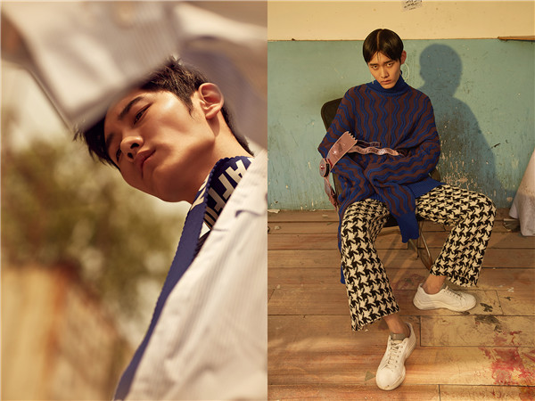 近期,新面孔優(yōu)秀學員尚宏慶拍攝了一組時尚大片。高領針織毛衣;經(jīng)典的千鳥格九分喇叭褲; 毛呢款風衣;睡衣系列套裝……所有的服裝都運用了經(jīng)典的懷舊時裝元素。略顯凌亂的發(fā)型帥氣個性,完美化身街頭少年,狂野不羈。