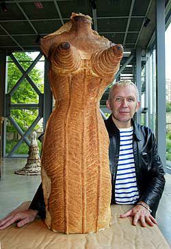 18歲,Jean Paul Gaultier成為Pierre Cardin的設(shè)計助理。他的設(shè)計沒有章法可循,他說“別想在我的作品中尋找模式,那不可能!彼逊寇嚨囊翁鬃兂煞棥⑼庖潞蛢(nèi)衣混合、顛鸞倒鳳地給男人穿上裙子。他最有名的作品是1990年替MADONNA設(shè)計的金色尖胸(CONE-BRA),當(dāng)然水手條紋衫已成為他的標(biāo)志。2004年秋天,他成為HERMES品牌設(shè)計,這意味著他已成為法國最有權(quán)勢的設(shè)計師之一。
