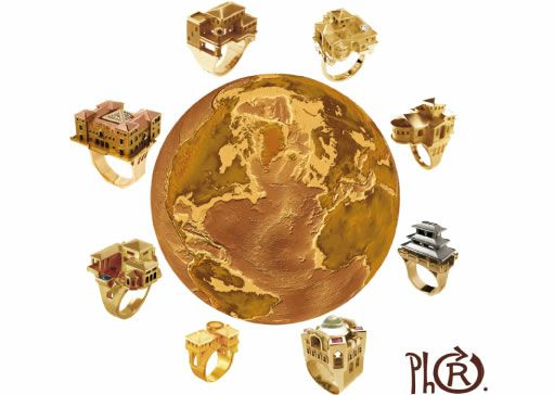 這次世界之旅從他的祖國一法國開始,“羅馬戒”是由建筑物“THE PRIEUR~SAINT-ROMAIN”激發(fā)靈感而創(chuàng)作的。然后到意大利是“佛羅倫薩戒”,之后是“阿拉伯宮殿戒”和“亞洲廟宇戒”的設(shè)計。